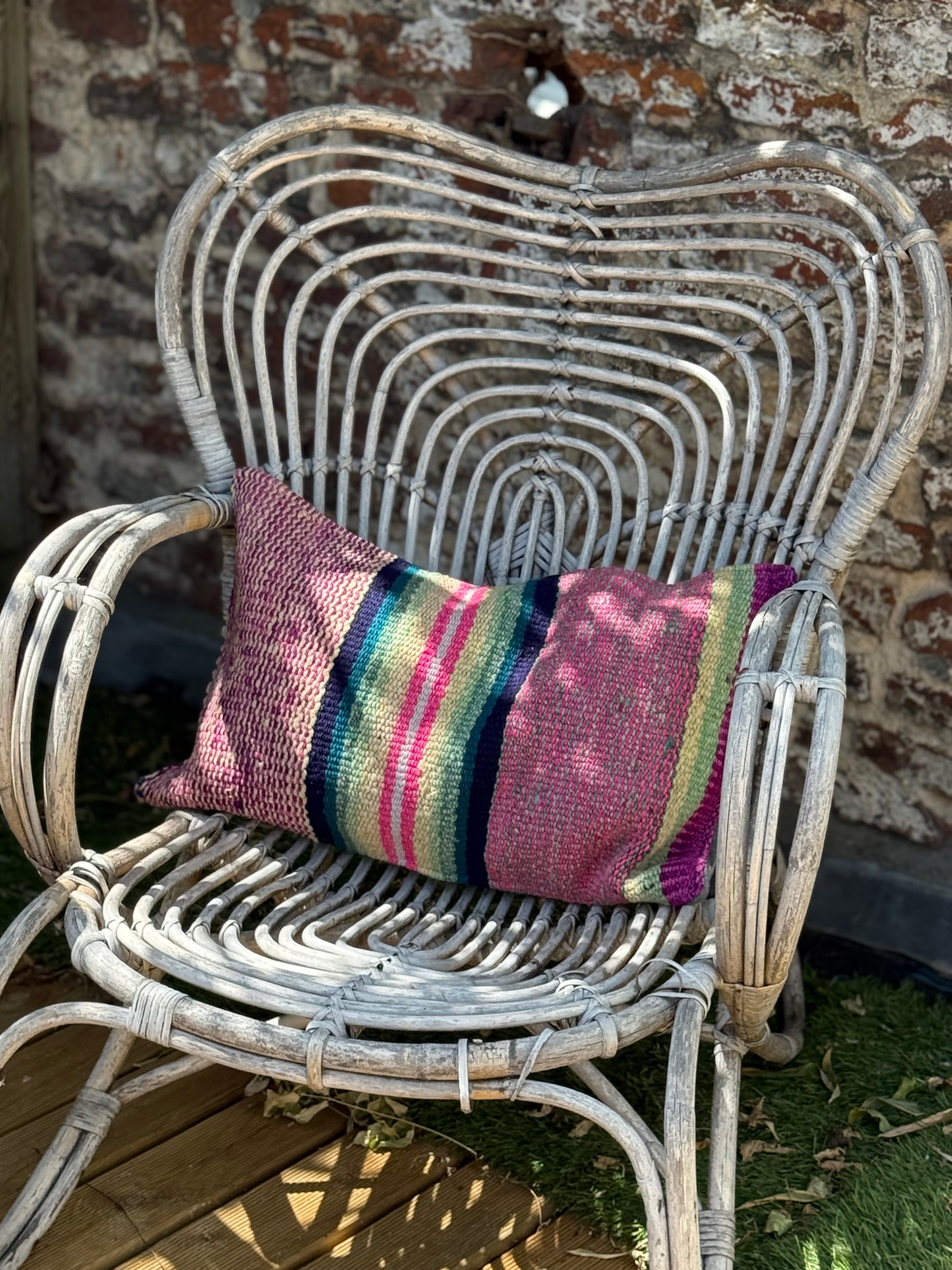 Onze kussenhoezen zijn gemaakt van unieke, handgeweven Andesdekens van schapenwol, meer dan 80 jaar oud. Elke deken vertelt een verhaal via kleur en patroon en wordt verkregen via het traditionele ruilsysteem Ayni. Van elke deken maken we slechts enkele hoezen.
