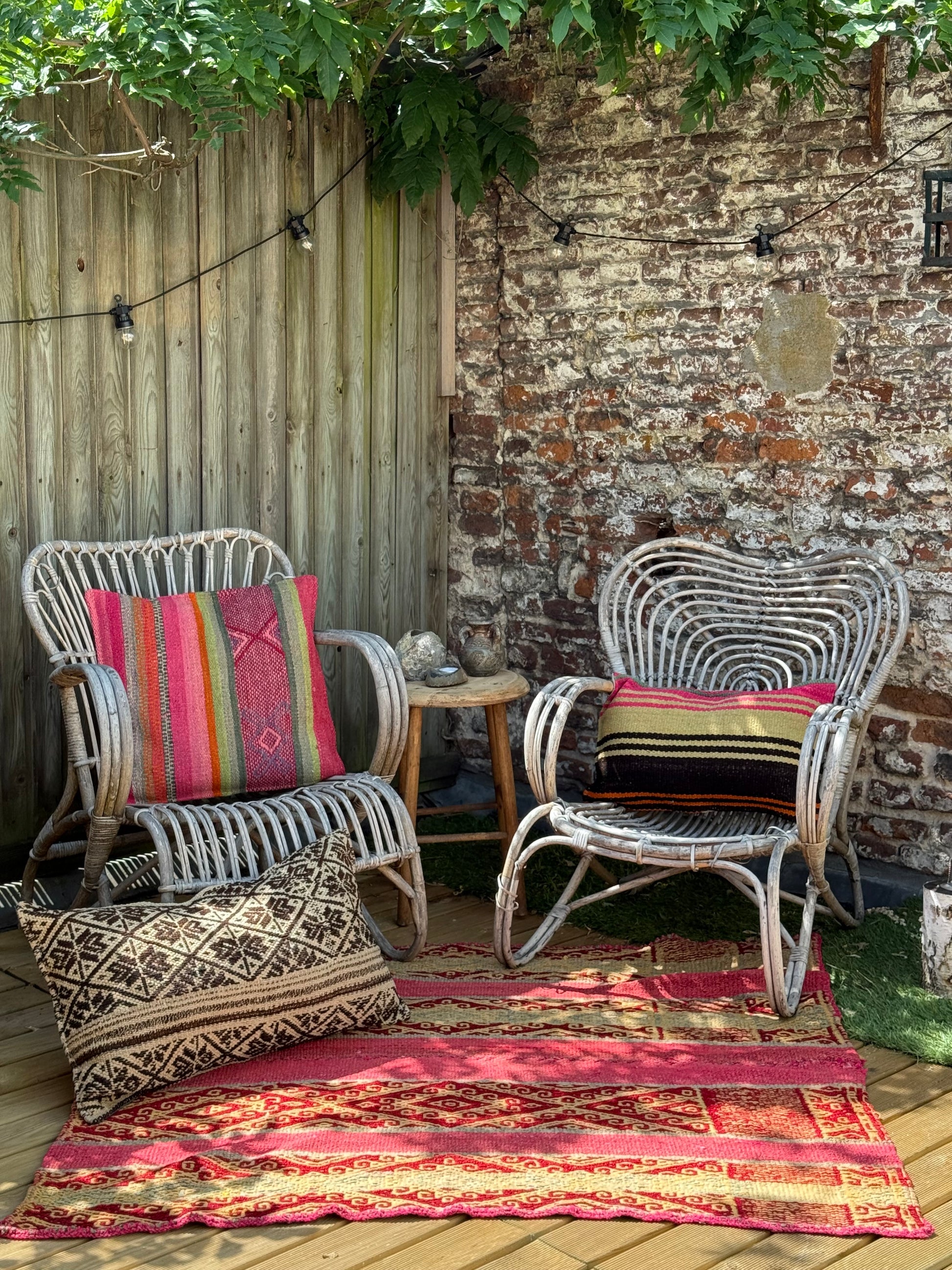 Onze kussenhoezen zijn gemaakt van unieke, handgeweven Andesdekens van schapenwol, meer dan 80 jaar oud. Elke deken vertelt een verhaal via kleur en patroon en wordt verkregen via het traditionele ruilsysteem Ayni. Van elke deken maken we slechts enkele hoezen.
