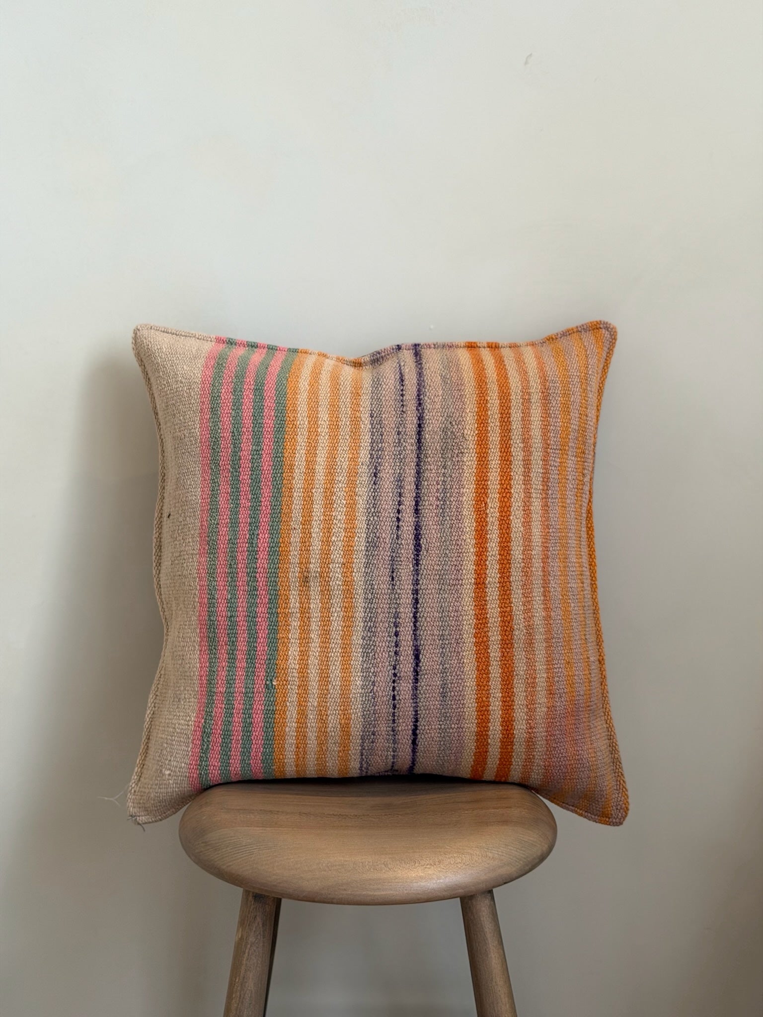 Onze kussenhoezen zijn gemaakt van unieke, handgeweven Andesdekens van schapenwol, meer dan 80 jaar oud. Elke deken vertelt een verhaal via kleur en patroon en wordt verkregen via het traditionele ruilsysteem Ayni. Van elke deken maken we slechts enkele hoezen.