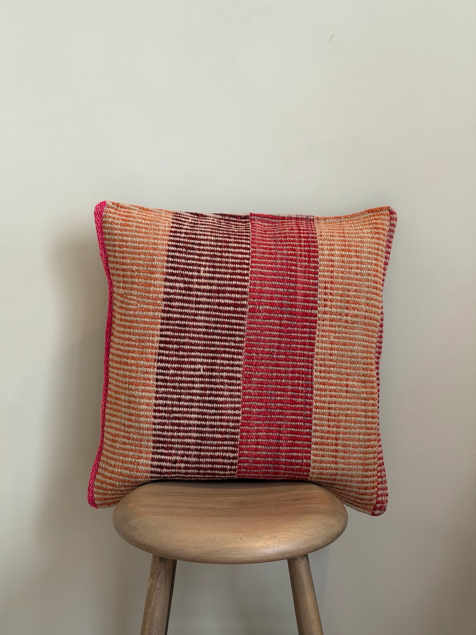 Omdat elke deken uniek is, kunnen we niet meer dan zes kussenhoezen per exemplaar maken. Elk kussen van Sapa Living is daarmee een uniek stukje levende geschiedenis: een tastbare verbinding met de Andes, handgemaakt met aandacht, betekenis en ziel.