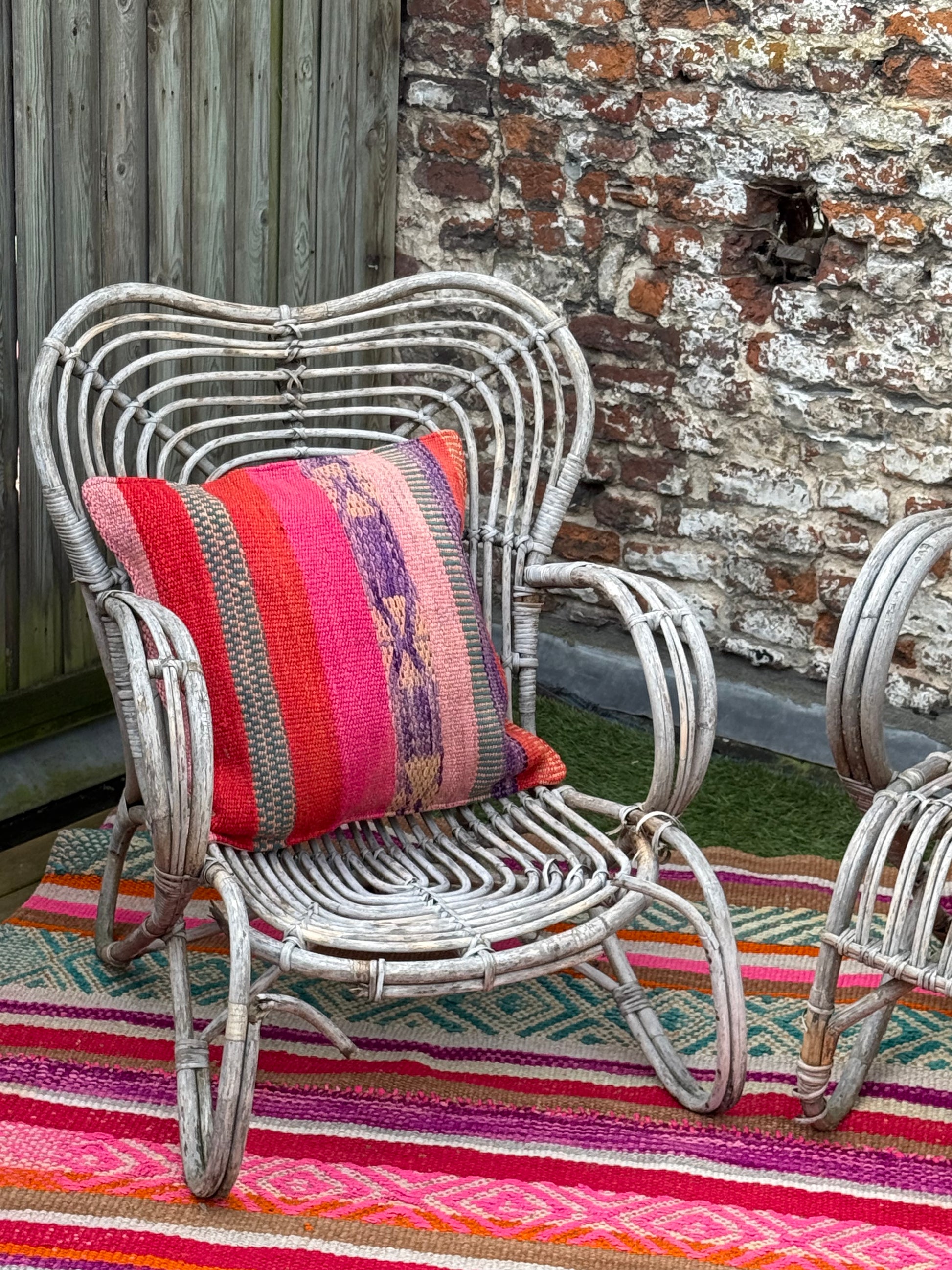 Onze kussenhoezen zijn gemaakt van unieke, handgeweven Andesdekens van schapenwol, meer dan 80 jaar oud. Elke deken vertelt een verhaal via kleur en patroon en wordt verkregen via het traditionele ruilsysteem Ayni. Van elke deken maken we slechts enkele hoezen.