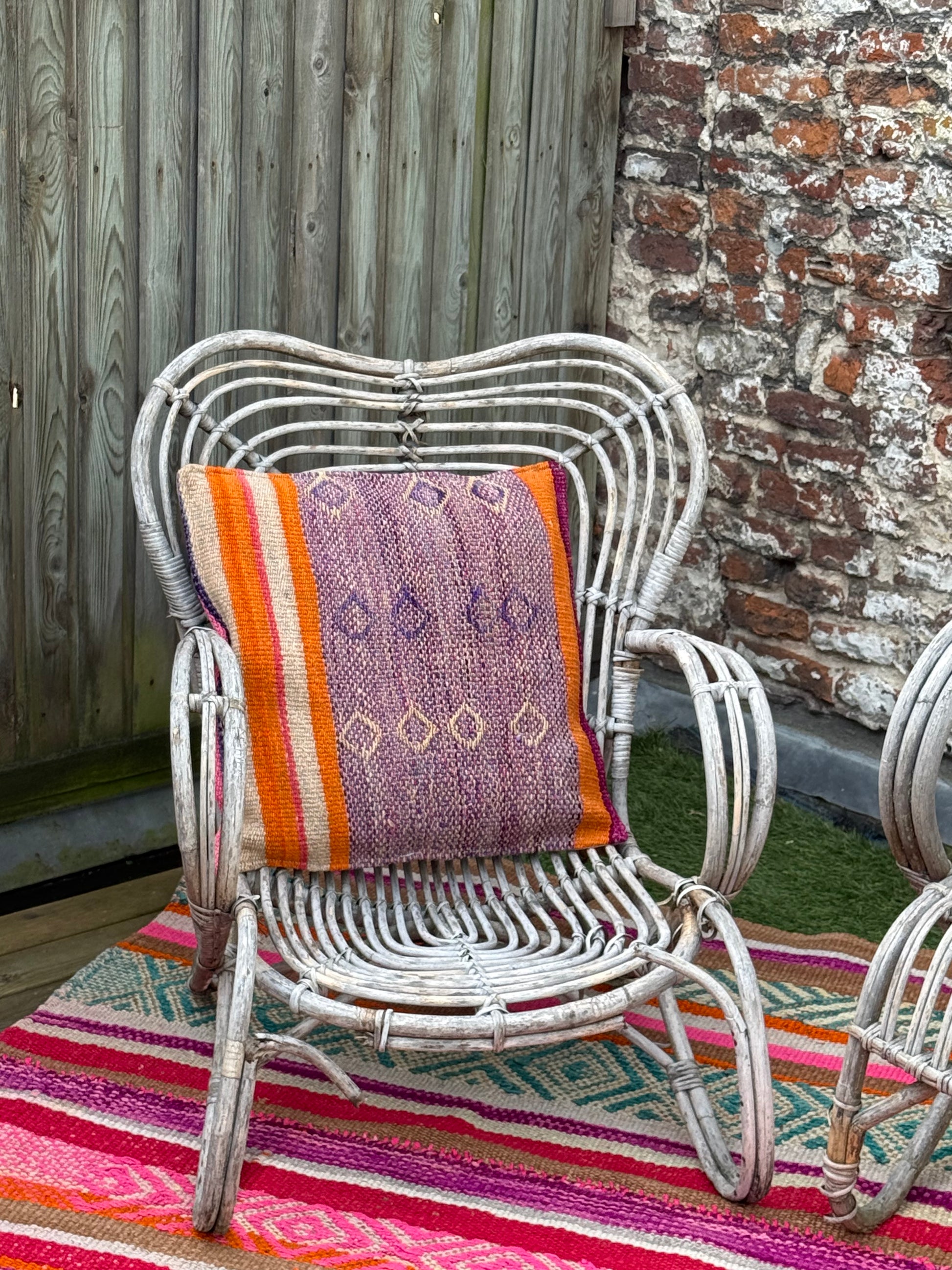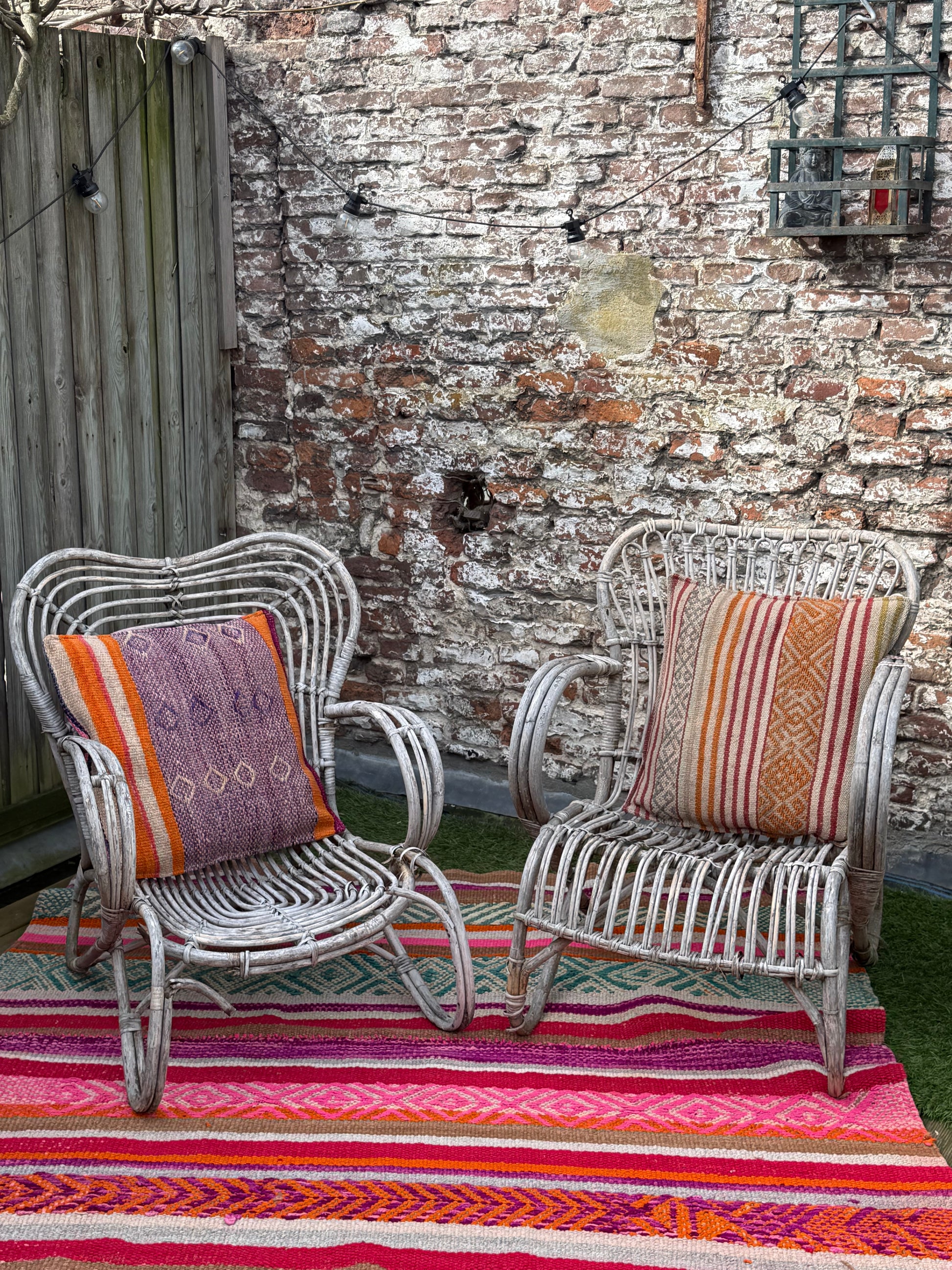 Onze kussenhoezen zijn gemaakt van unieke, handgeweven Andesdekens van schapenwol, meer dan 80 jaar oud. Elke deken vertelt een verhaal via kleur en patroon en wordt verkregen via het traditionele ruilsysteem Ayni. Van elke deken maken we slechts enkele hoezen.