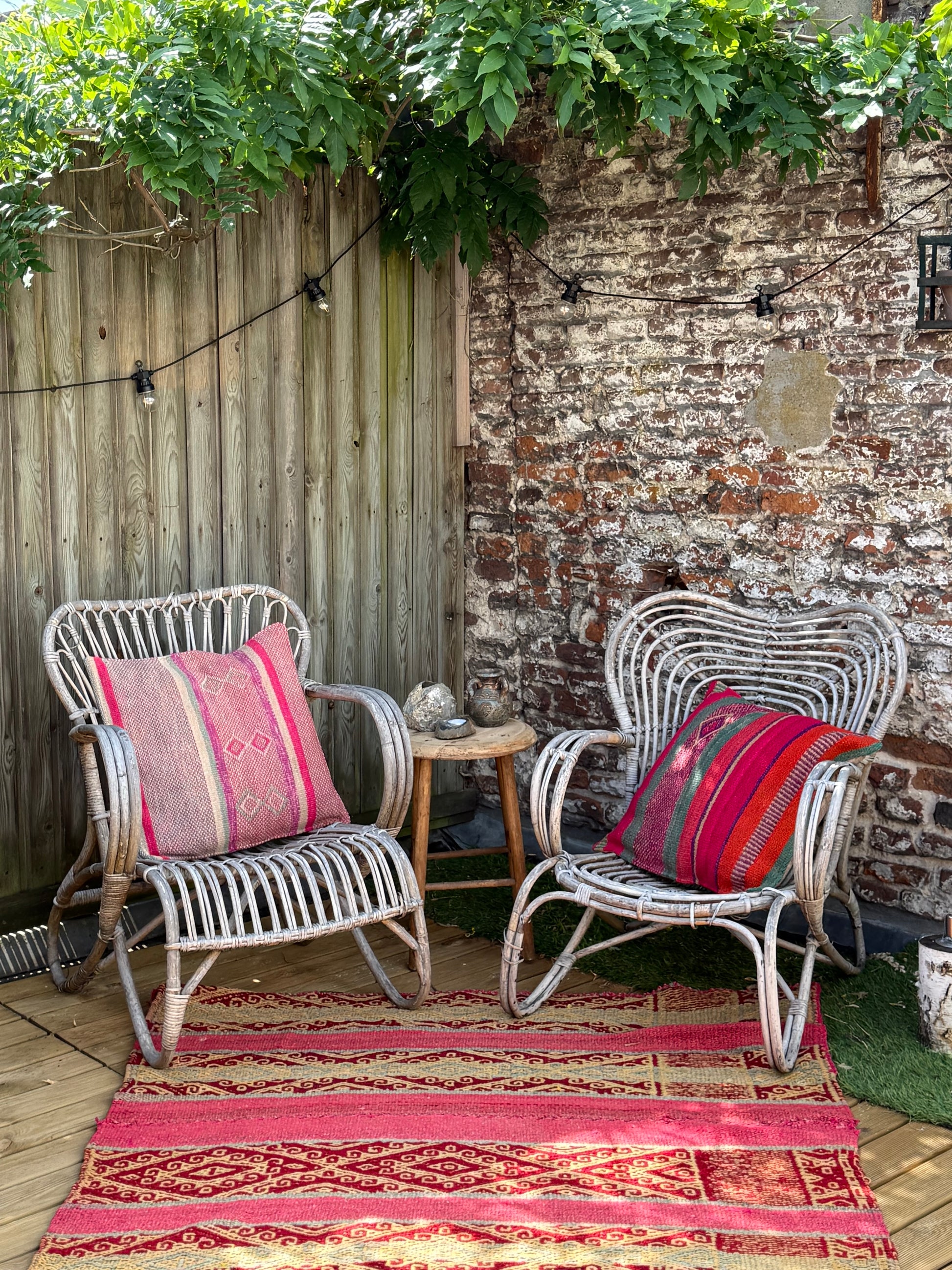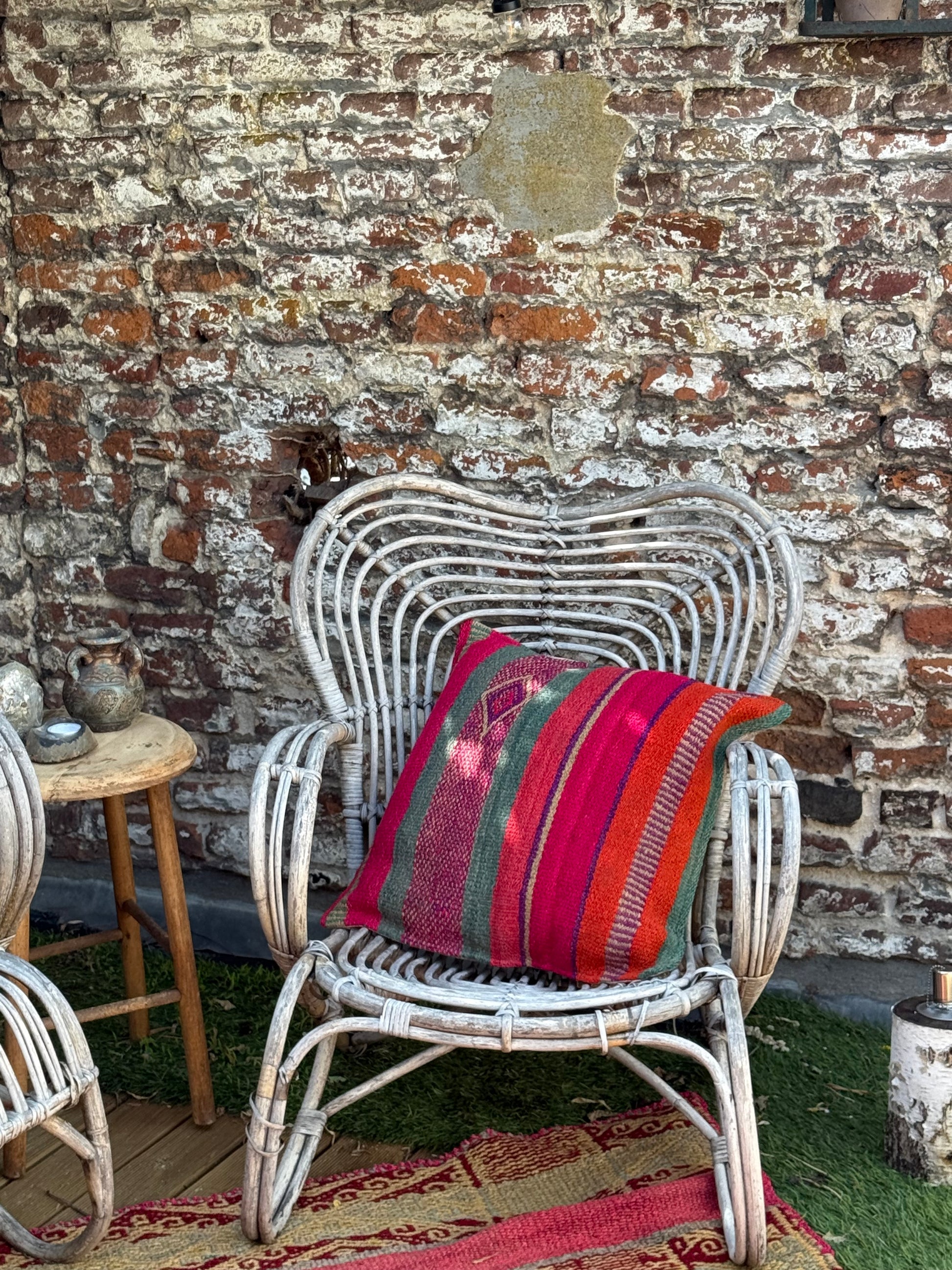 Onze kussenhoezen zijn gemaakt van unieke, handgeweven Andesdekens van schapenwol, meer dan 80 jaar oud. Elke deken vertelt een verhaal via kleur en patroon en wordt verkregen via het traditionele ruilsysteem Ayni. Van elke deken maken we slechts enkele hoezen.