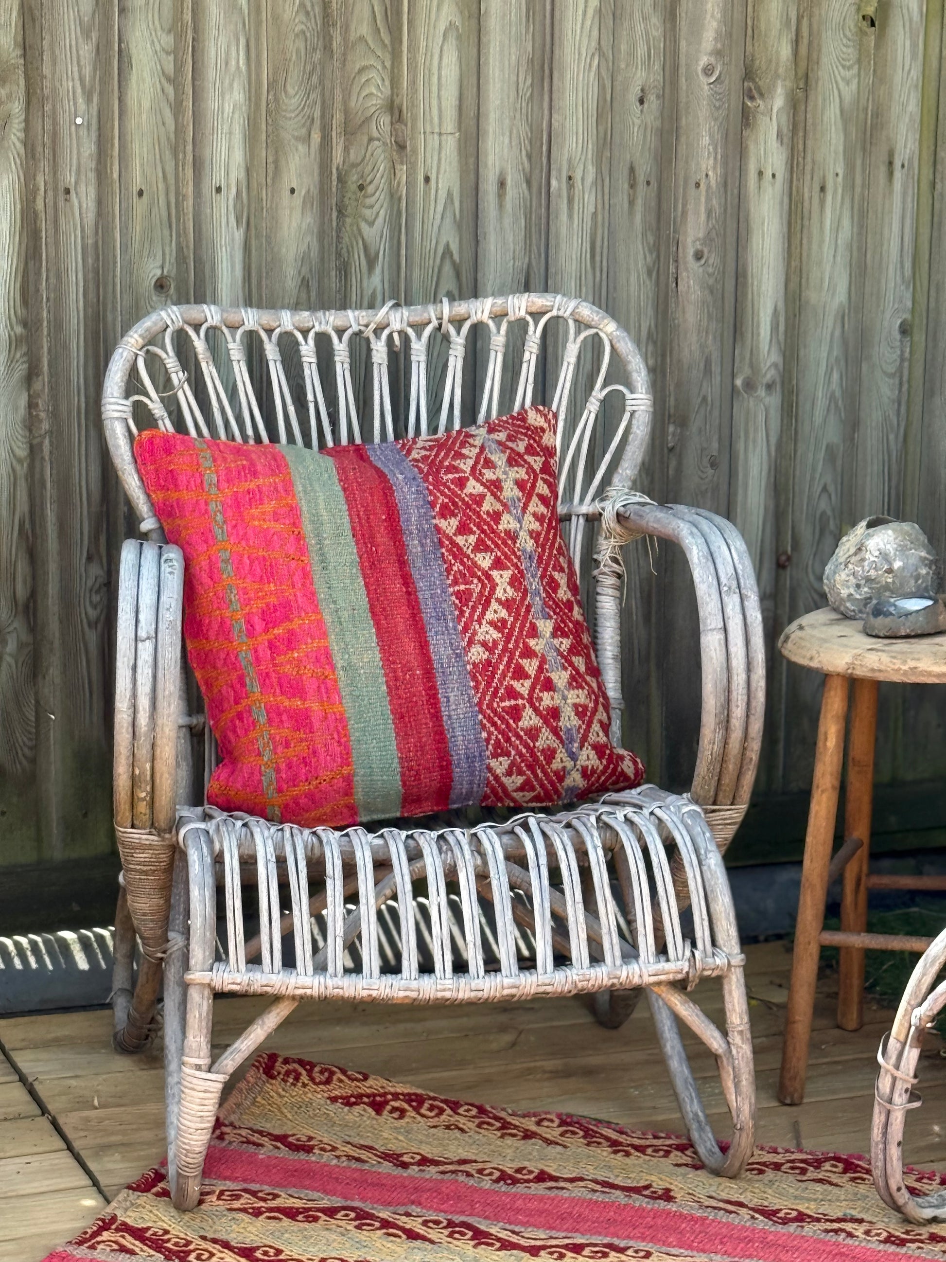 Onze kussenhoezen zijn gemaakt van unieke, handgeweven Andesdekens van schapenwol, meer dan 80 jaar oud. Elke deken vertelt een verhaal via kleur en patroon en wordt verkregen via het traditionele ruilsysteem Ayni. Van elke deken maken we slechts enkele hoezen.