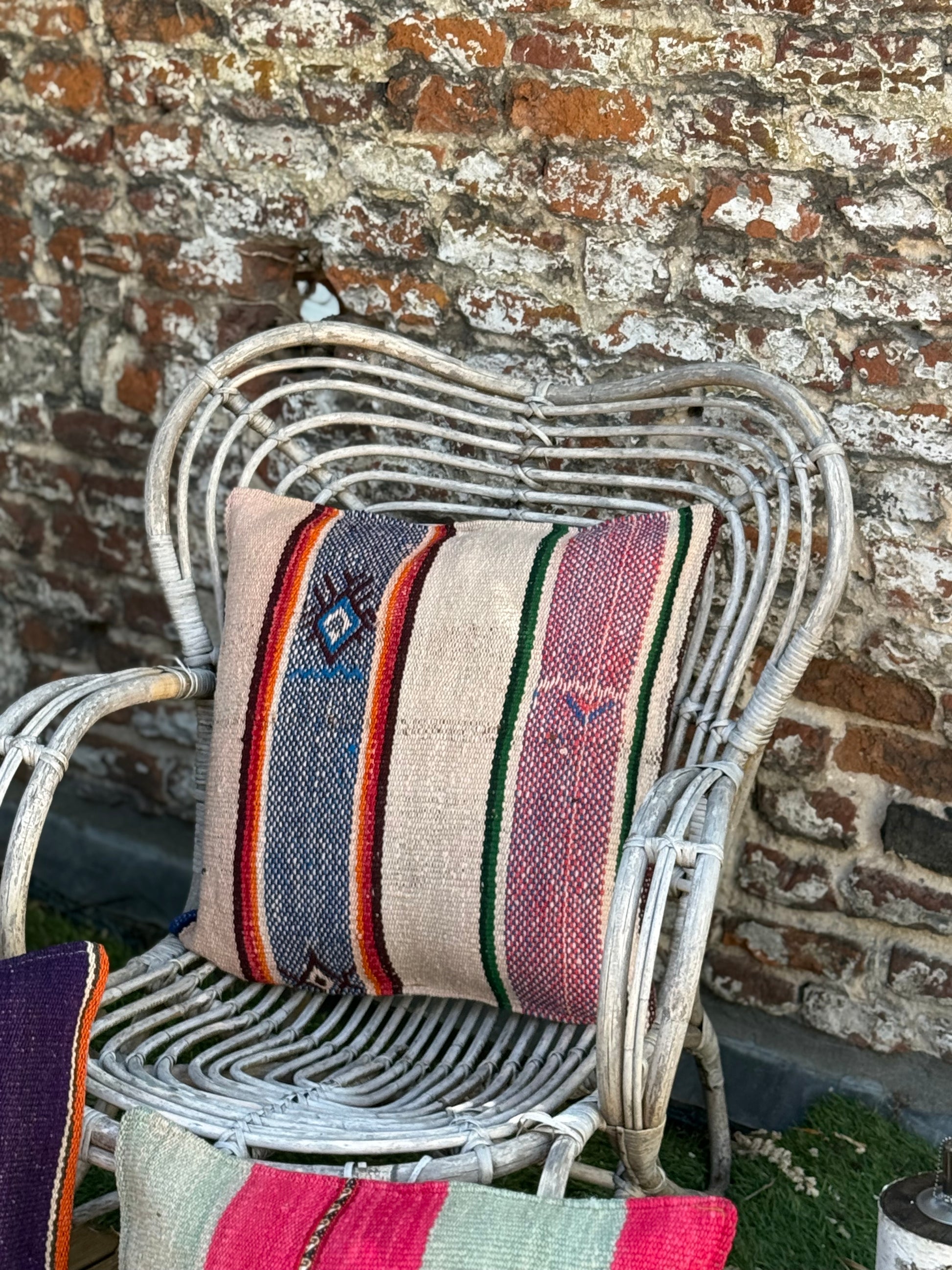 Onze kussenhoezen zijn gemaakt van unieke, handgeweven Andesdekens van schapenwol, meer dan 80 jaar oud. Elke deken vertelt een verhaal via kleur en patroon en wordt verkregen via het traditionele ruilsysteem Ayni. Van elke deken maken we slechts enkele hoezen.