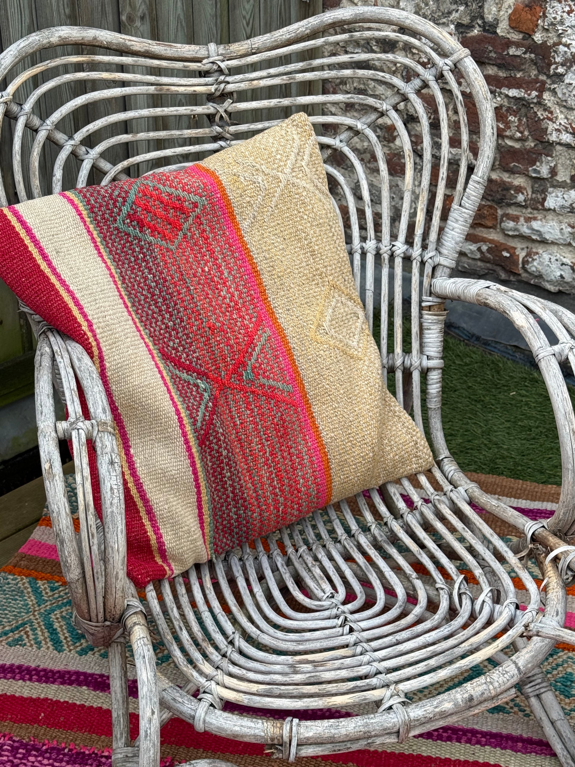 Onze kussenhoezen zijn gemaakt van unieke, handgeweven Andesdekens van schapenwol, meer dan 80 jaar oud. Elke deken vertelt een verhaal via kleur en patroon en wordt verkregen via het traditionele ruilsysteem Ayni. Van elke deken maken we slechts enkele hoezen.